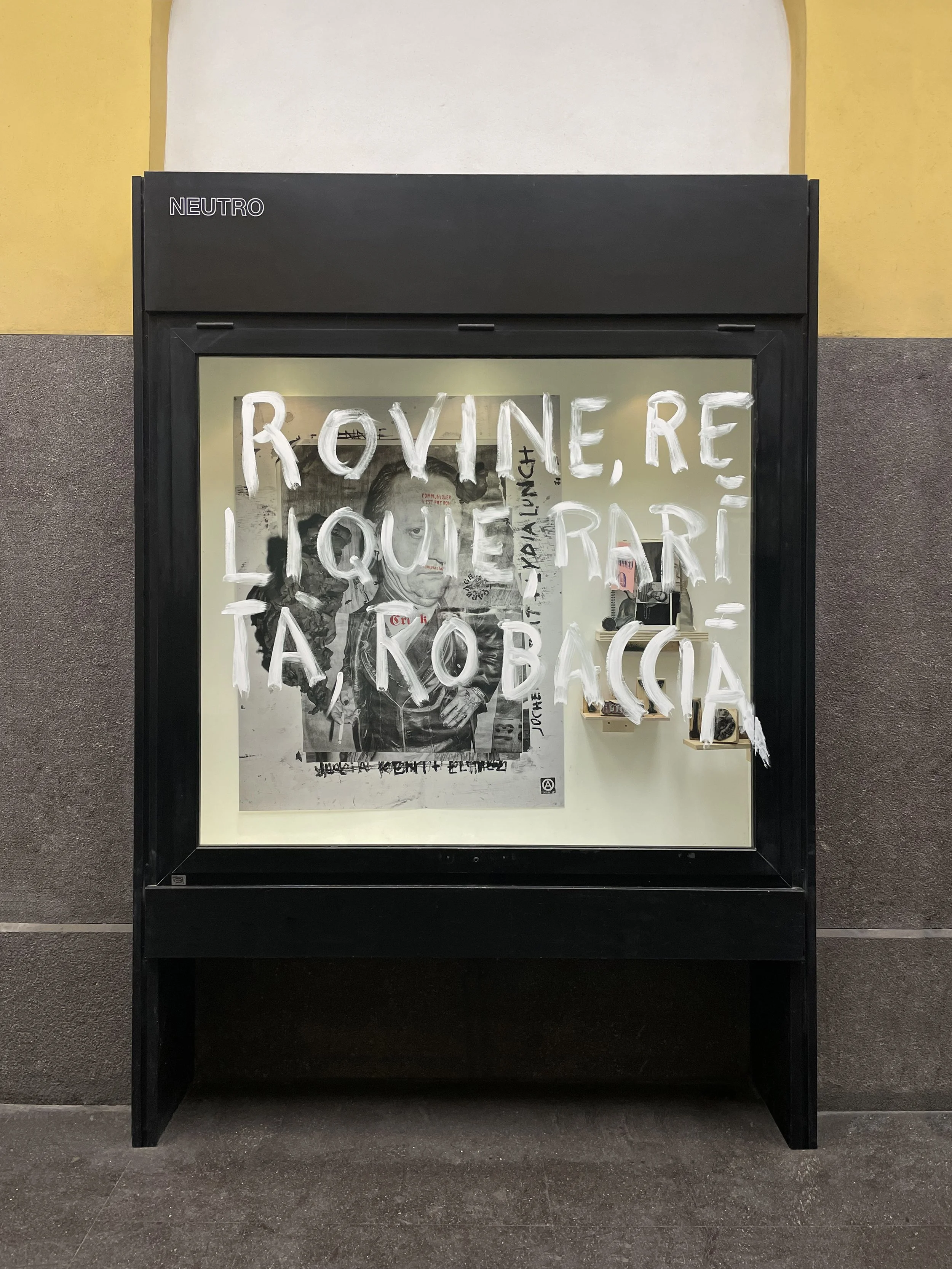 Le immagini scattate (e scartate) al B-Tomic, locale di La Spezia di cui l’artista è stato fondatore, sono saccheggiate e assemblate in nuove opere la cui estetica è quella del brandello, della citazione, della strada.